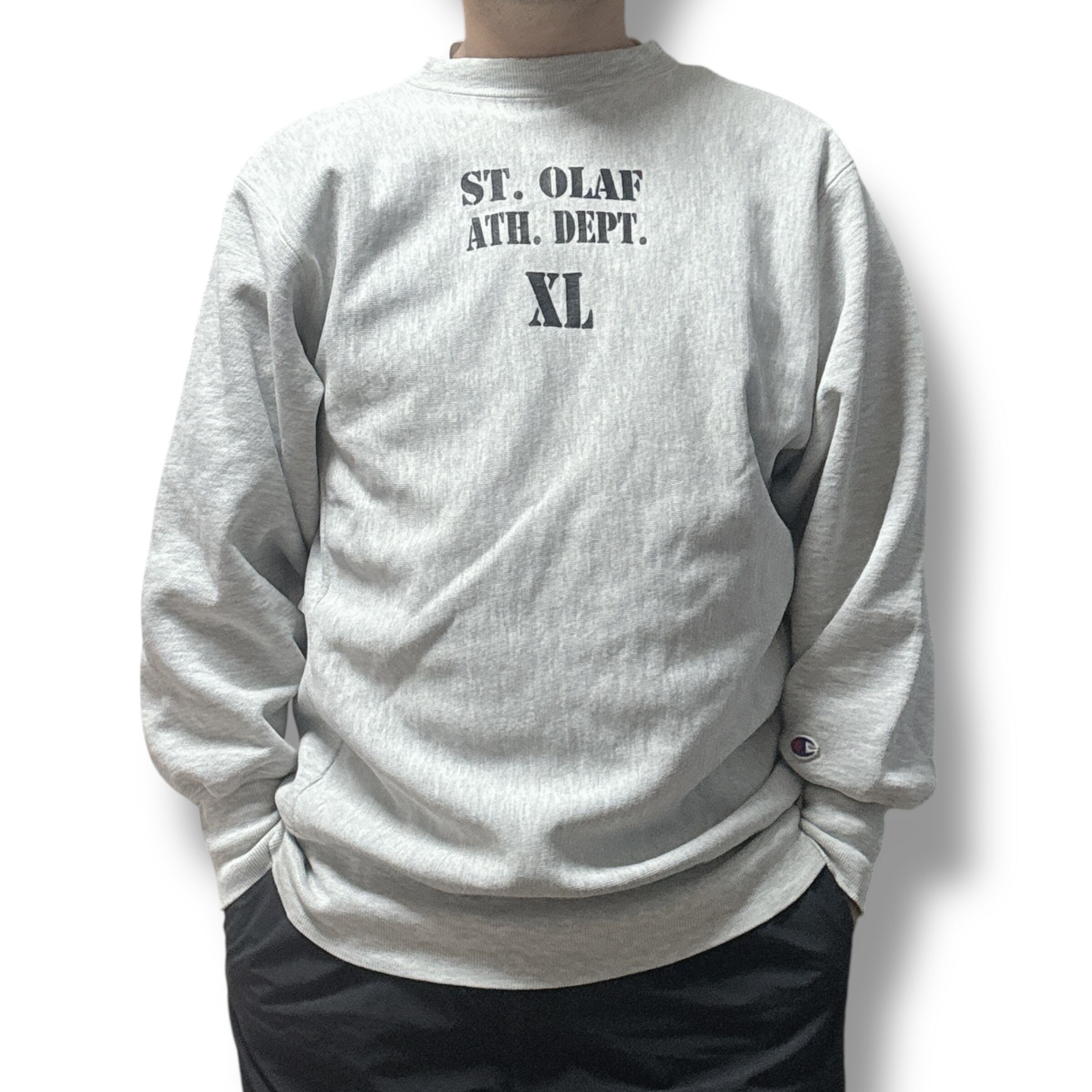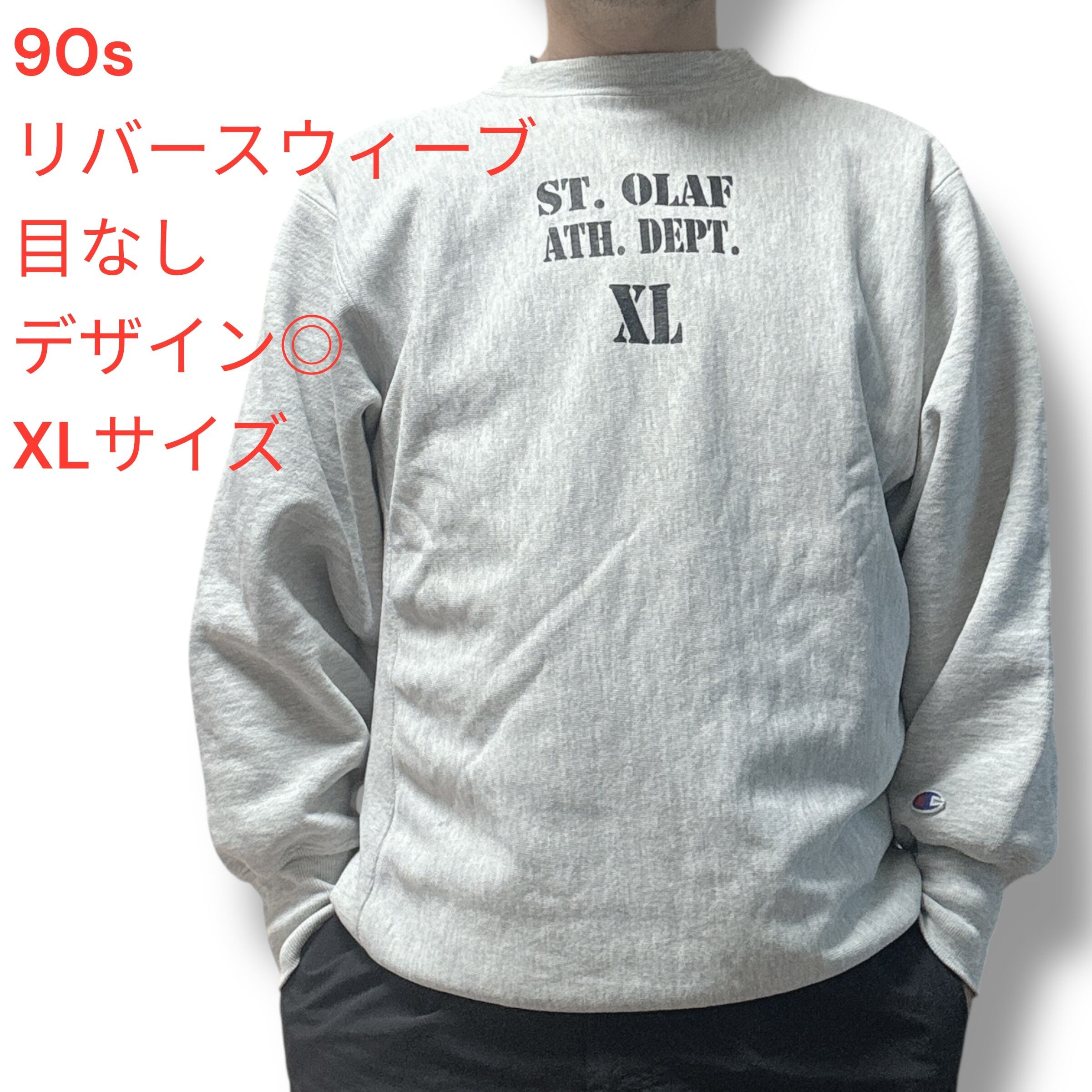 90s チャンピオン リバースウィーブ 目なし usa製 ステンシル グレー XLサイズ